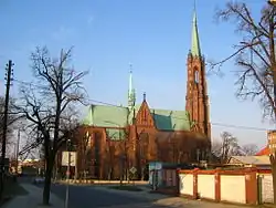 - ↑ Po pożarze kościoła w 1777 roku ówczesną ponad 100-metrową wieżę rozebrano i dopiero w 1907 zbudowano nową, istniejącą do dzisiaj. Jest to najwyższy kościół po prawej stronie Wisły.