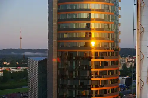 - ↑ Europa Tower (tallest building in Lithuania) (Vilnius) - opis budynku [online], Budowle.pl [dostęp 2023-01-15] (pol.).
