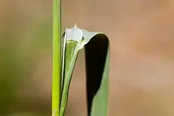 - Ulistnienie naprzemianległe. Liście żywozielone, równowąskie, całobrzegie. Pochwa obejmująca źdźbło sięga aż do kolanka. U dolnych liści języczek bardzo mały, u górnych większy (do 2 mm) i przeważnie ostry.