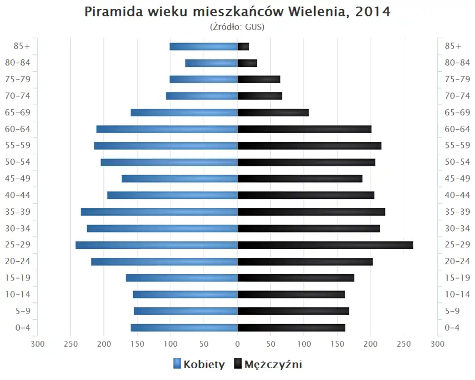 - Piramida wieku mieszkańców Wielenia w 2014 roku[4].