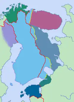 Mapa przedstawia granice Finlandii ustalone przez Pokój z Tartu w 1920 i paryski traktat pokojowy z 1947 r.Wielka Finlandia (fiń. Suur-Suomi) – koncepcja stworzona przez irredentystyczne fińskie ruchy nacjonalistyczne i faszystowskie[1] przed II wojną światową. Postulowała ona złączenie wszystkich ludów fińskich w ramach jednego państwa. Ludy te prócz Finów to: Karelowie, Estończycy, Ingrowie, Liwowie i Kwenowie. Idea Wielkiej Finlandii zyskała znaczną popularność po 1917 roku, ale przestała istnieć po tzw. wojnie kontynuacyjnej (1941–1944), przegranej przez Finlandię.