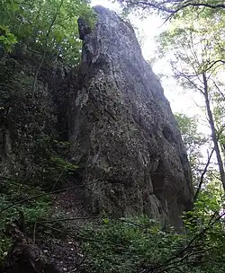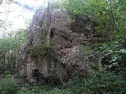 Tuż obok, po północnej stronie Wielkiej Skały znajduje się niższa (wysokość do 10 m) Niewielka Skała, która również jest obiektem wspinaczki skalnej[3]. Parking jest na ul.Topolowej (skręcając w ul. Podskalany pierwszy zakręt w lewo 200 m drogi kamienistej i boisko z parkingiem). Wejście do lasu od strony tarasu widokowego.