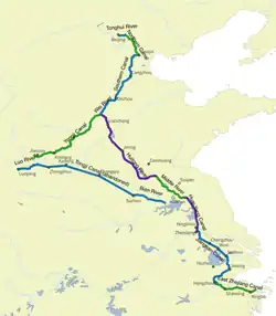Pierwszy odcinek kanału, liczący 85 kilometrów, został przekopany w 495 p.n.e. i połączył Suzhou z Jangcy. Dziewięć lat później przekopano następny odcinek, który przebiegał przez Yangzhou i kończył się Huai’an nad Huai He.