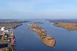 W rejonie wyspy znajduje się port morsko-rzeczny Police.