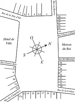 Maison du Pigeon | Dawna siedziba cechu malarzy[10]. W 1852 roku mieszkał tu Wiktor Hugo po emigracji z Francji po Wiośnie Ludów[10][15]. |