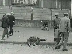 ![]() Ulica w Charkowie w 1932, przechodnie mijają zmarłych z głodu ludzi. Fot. Alexander Wienerberger | |