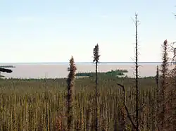 ![]() Zdjęcie satelitarne jeziora ze zmienioną kolorystyką | |