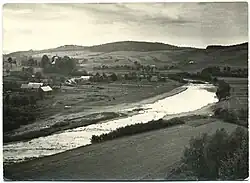 Powyżej terenu zalewowego rzeki ciągną się zabudowania miejscowości, a nad nimi pola uprawne. Uprawia się warzywa, ziemniaki, zboża, a mniej urodzajne stanowiska zajmują pastwiska.