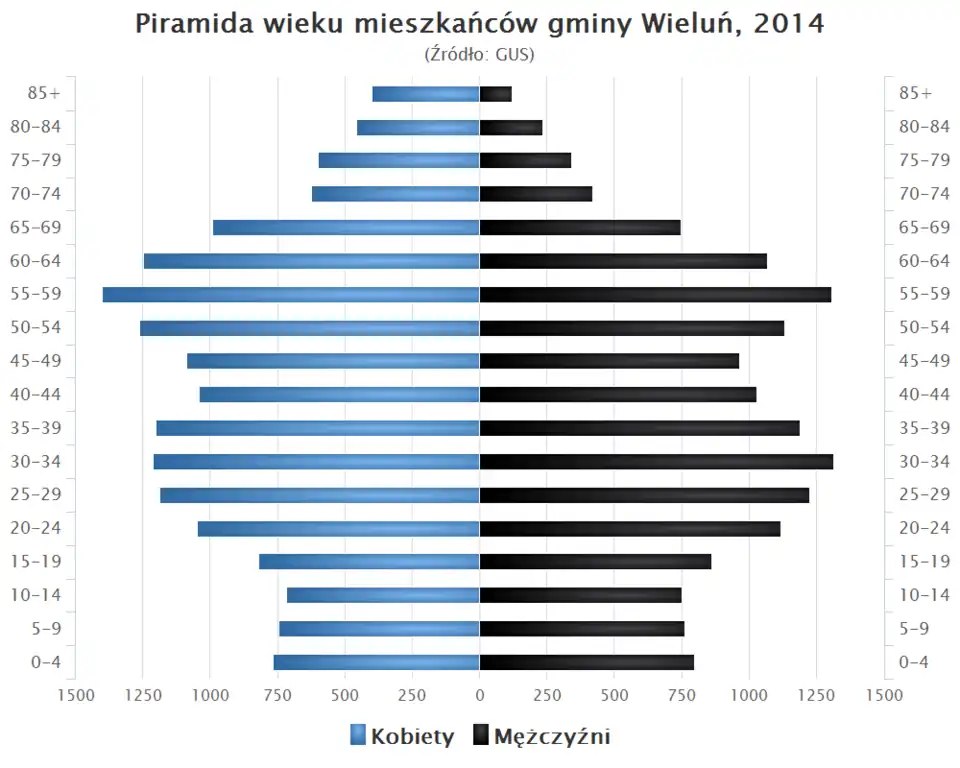 - Piramida wieku mieszkańców gminy Wieluń w 2014 roku[6].