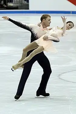 ![]() Wiera Bazarowa i Jurij Łarionow na podium mistrzostw Europy 2012 | ||||||||||||||||||||||||||||
