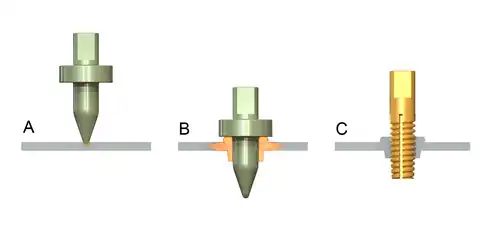 Metoda ta jest alternatywą dla nitonakrętek, nakrętek spawanych, nakrętek zgrzewanych oraz tłoczonych.