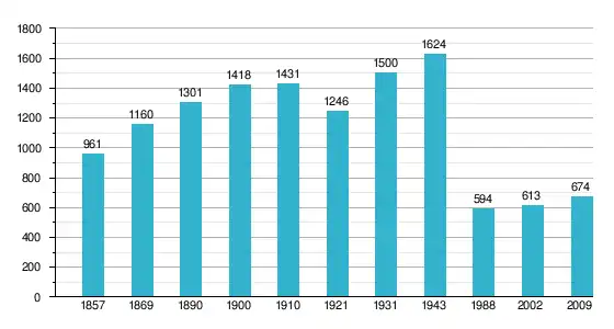 Ludność według spisów powszechnych, w 2009 roku według PESEL[7][8][9][10].
