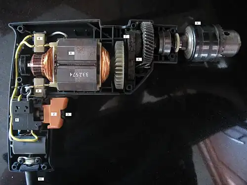 Poza powyższymi elementami w budowie wiertarek, znajdują się również często: