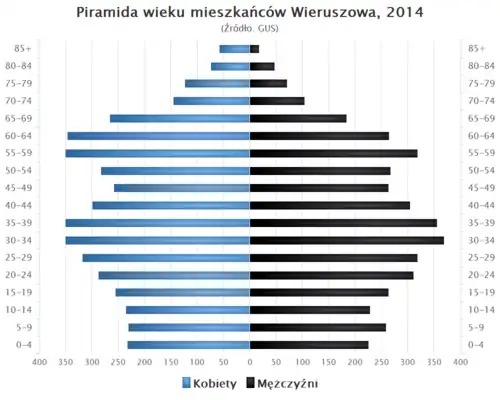 - Piramida wieku mieszkańców Wieruszowa w 2014 roku[6].