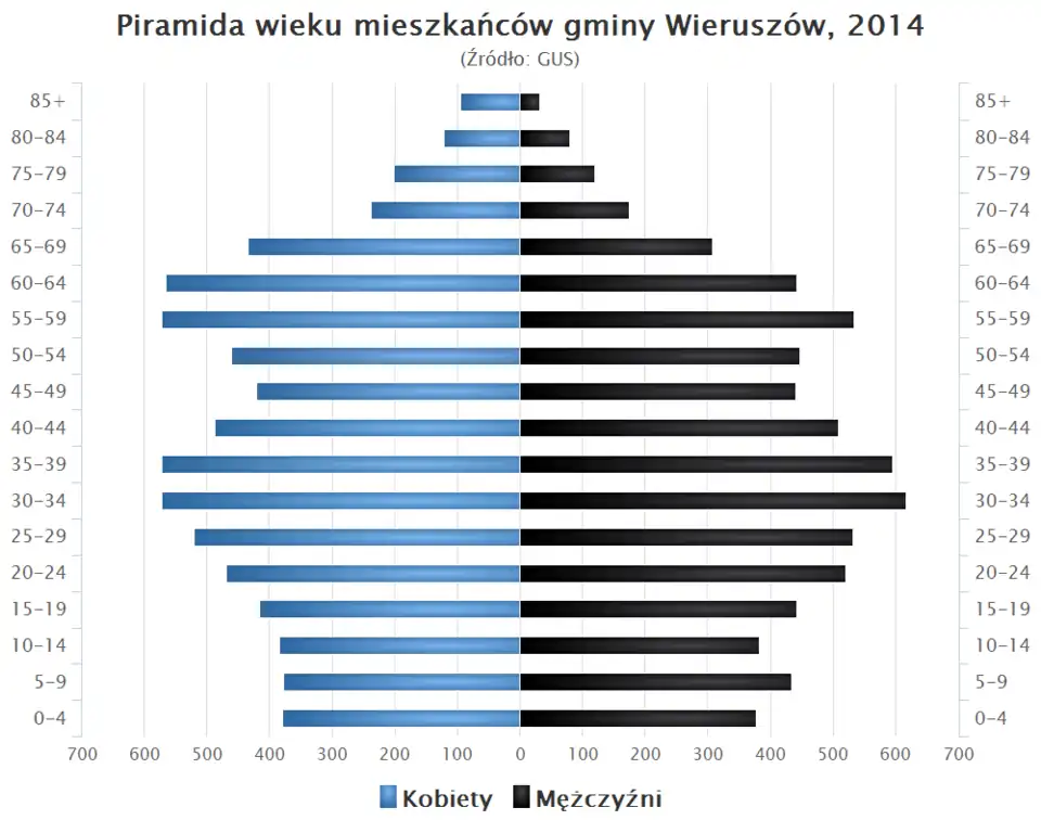 - Piramida wieku mieszkańców gminy Wieruszów w 2014 roku[1].