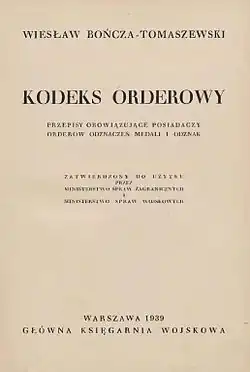 - Kodeks orderowy. Warszawa-Kraków, 1939.