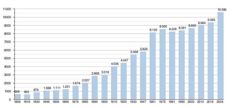 - Źródła: NIS, od 1806 do 1981= według spisu; od 1990 liczba ludności w dniu 1 stycznia