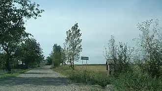 Dwujęzyczna tablica przy wjeździe do miejscowości