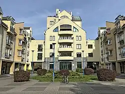 ![]() Widok na osiedle z powietrza od południowego wschodu. Na pierwszym planie segmenty jednorodzinne, w głębi zabudowa wielorodzinna (2025) | |