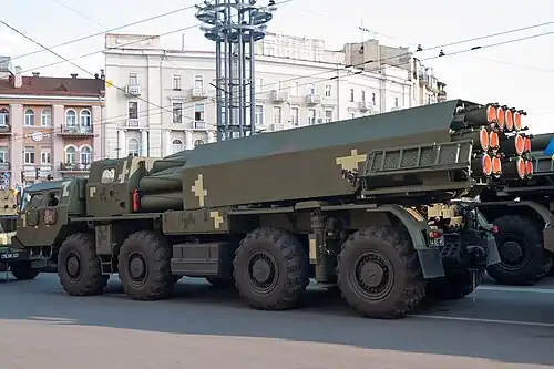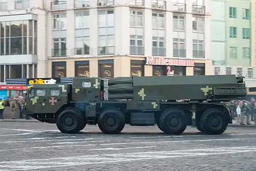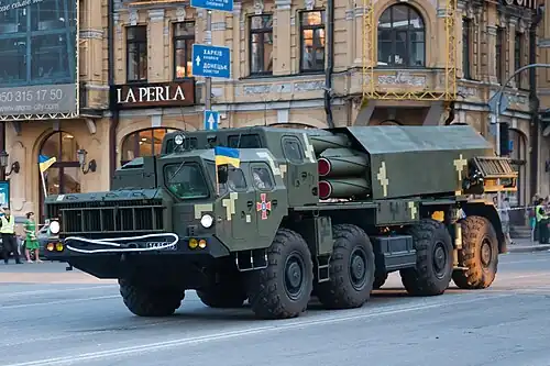 - ↑ В Україні відбулися успішні випробування нової моделі керованої ракети для РСЗВ, „Interfax-Ukrajina”, 23 września 2016 [dostęp 2022-04-07].