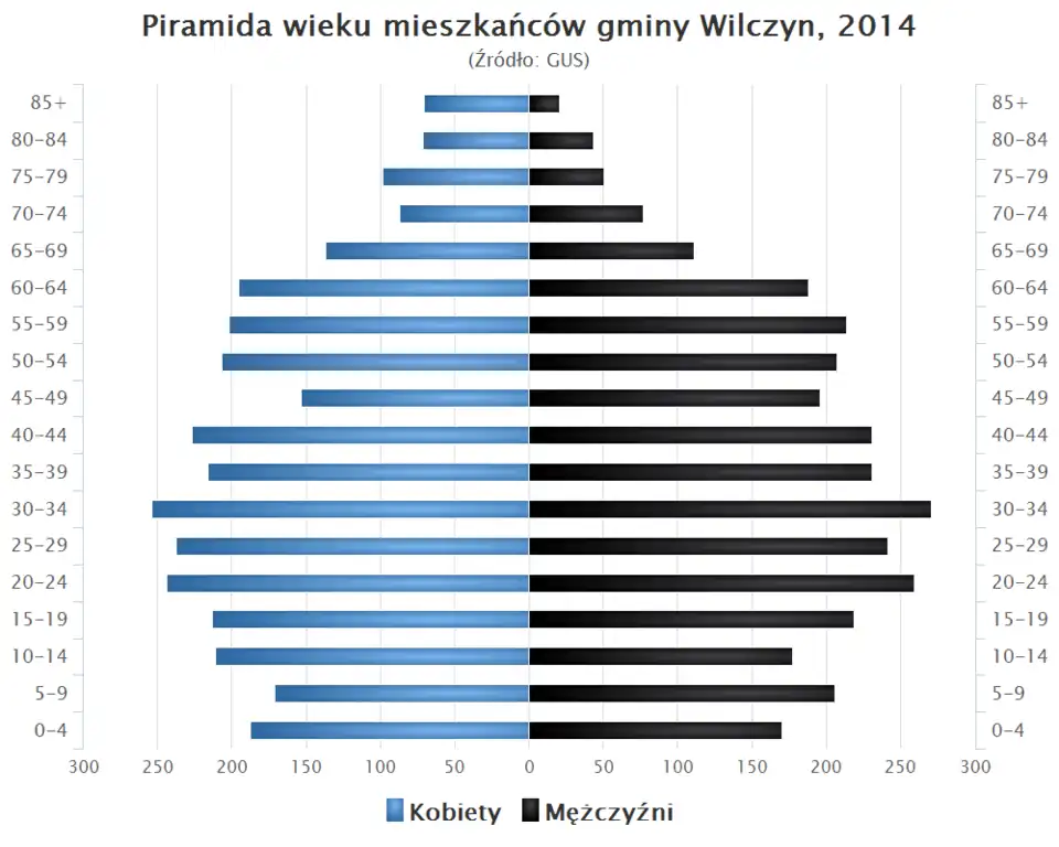 - Piramida wieku mieszkańców gminy Wilczyn w 2014 roku[4].