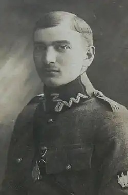 - 01-12-1916 – 25-05-1917 w 6 kompanii 57 Austriackiego pułku piechoty jako chorąży, dowódca półkompanii na froncie włoskim;