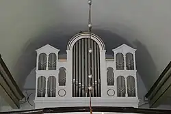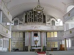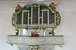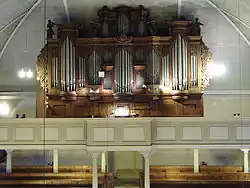 2+P | 19 | 793 | Prospekt z roku 1725 wykonany przez Johanna Nikolausa Schäfera. Traktura pneumatyczna. Instrument zachował się do dnia dzisiejszego w stanie oryginalnym. Wymieniono tylko dmuchawę elektryczną i piszczałki prospektowe. Ostatnia renowacja nastąpiła w roku 1999. |