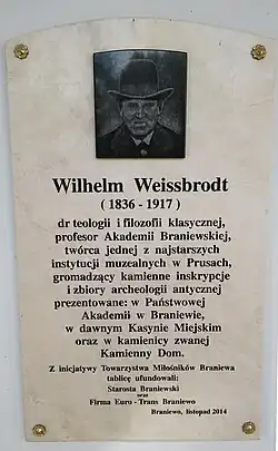 Przy braniewskim Liceum Hosianum Wilhelm Weißbrodt utworzył w 1880 jedno z najstarszych muzeów w Prusach Wschodnich Das Antik-Archäologische Kabinett am Lyceum Hosianum in Braunsberg. Pierwotnym zamysłem autora było stworzenie sali historycznej stanowiącej bazę dydaktyczną dla studentów uczelni, lecz dzięki gorliwości profesora z początkowo niewielkiego zbioru gipsowych odlewów powstało pokaźne muzeum sztuki antycznej. Wśród eksponatów zgromadził w nim oprócz odlewów wiele zabytkowych inskrypcji oraz znalezisk archeologicznych. Pod koniec życia profesora Weißbrodta katalog zbiorów liczył 1250 pozycji, z czego około połowa zbiorów była oryginałami[2]. Jednym z najcenniejszych eksponatów, pozyskanym w 1900 przez prof. Weißbrodta do muzeum, była Biblia. Testamentum Novum cum prologis z VIII w., przechowywana obecnie w Bibliotece Narodowej[3].