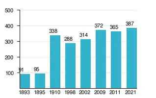 Źródła: 1893[10]; 1895[9]; 1910[9]; 1998[4]; 2002[4]; 2009[4]; 2011[4]; 2021[4]