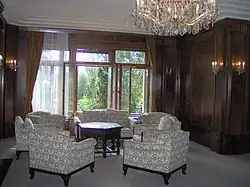 Pomieszczenia reprezentacyjne mieściły się na parterze, a na piętrze pokoje służby, pokoje dla gości, część socjalna i bawialnia dla dzieci z wyjściem na taras.
