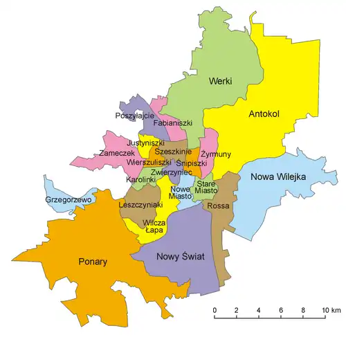 Wilno dzieli się na 20 dzielnic (gmin):