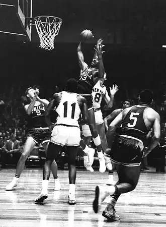 - liczbie celnych rzutów z gry – 7 – (1960–1966), wyrównany przez Michaela Jordana (1987–1993)