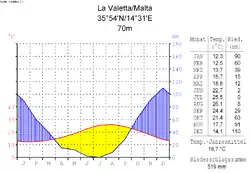 - ↑ Dane klimatyczne dla Valletty. [dostęp 2013-05-29]. (ang.).