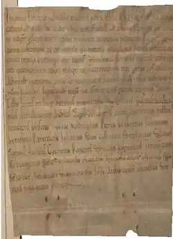 W roku 1189 imię Wincentego, jako świadka, pojawiło się na dokumencie opatowskim, wystawionym przez Kazimierza Sprawiedliwego dla kapituły krakowskiej. Dyktat tego dokumentu jest stylistycznie podobny do Kroniki, a znawcy średniowiecznej dyplomatyki uważają, że jego autorem był Kadłubek. Ich zdaniem Wincenty pracował wówczas jako kapelan w kancelarii książęcej[3]. Wojciech Kętrzyński oraz Karol Maleczyński wysunęli tezę, że dokument opatowski jest jedynym zachowanym autografem Wincentego Kadłubka. Dokument ten spisany został pismem wyraźnym i eleganckim, odznaczającym się charakterystycznymi ligaturami st oraz ct. Górna laseczka litery s jest wolno puszczona w dół, aż do przecięcia się z trzonkiem i zakończeniem laseczki chorągiewką. Pismo żadnego innego dokumentu wystawianego na ziemiach polskich nie ma takich cech, natomiast są to cechy charakterystyczne dla tzw. pisma leodyjskiego, używanego w XII wieku w północnej Francji[31].