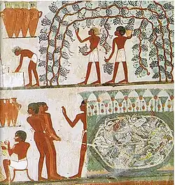Ze względu na ogromne znaczenie winorośli w basenie Morza Śródziemnego – odgrywała ona istotną rolę w różnych starożytnych kulturach tego obszaru. Już 5 tysięcy lat temu w starożytnym Egipcie i Mezopotamii winnice i piwnice pełne wina były symbolem bogactwa i przedmiotem dumy władców. Winnica była darem faraona Amenhotep III dla świątyni w Luksorze, a amfory z winem umieszczano w grobowcach faraonów (np. Tutanchamona)[55]. W sumeryjskim eposie ocalony z potopu Utnapisztim właśnie z wina składał bogom ofiarę w podzięce za ocalenie[36].