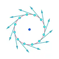 | Obrót bryły sztywnej jako wir v ∝ r |
