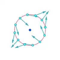 Średnia wirowość w małym obszarze przepływu płynu jest równa cyrkulacji po obwodzie małego obszaru, podzielonym przez jego pole A[1].