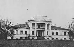 Prawdopodobnie pod koniec XVIII wieku Paweł Jagmin wzniósł tu klasycystyczny pałac zaprojektowany przez Franciszka Jaszczołda. Był to parterowy, w środkowej części piętrowy, z bardzo wysokimi suterenami, wybudowany na planie prostokąta budynek. Po obu stronach (frontowej i ogrodowej) miał duże portyki, każdy z dwiema parami kolumn w wielkim porządku wspierających schodkowe szczyty. Pałac po 1920 roku był całkowicie zdewastowany i niezamieszkany. Po jego rozebraniu część stałego wyposażenia, np. piece zostały przeniesione do Muzeum Narodowego w Warszawie[4].