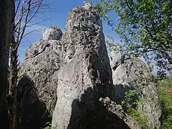 - Witkowy Filar – ostaniec wznoszący się samotnie na północno-wschodnim końcu grupy, tuż nad ścieżką szlaku turystycznego. Jego zachodnia ściana jest pionowa, ma wysokość 12 m. Są 3 drogi[2].