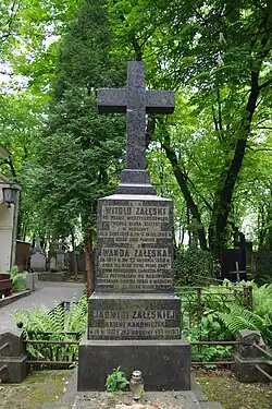 - ↑ Cmentarz Stare Powązki: ELEONORA ZAŁĘSKA, [w:] Warszawskie Zabytkowe Pomniki Nagrobne [dostęp 2020-06-21].
