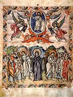 Wniebowstąpienie Jezusa Chrystusa opisane zostało w Ewangelii Marka (16,19), Ewangelii Łukasza (24,51) oraz w Dziejach Apostolskich (1,9). Jezus przez 40 dni po swoim zmartwychwstaniu przebywał wśród uczniów. Po tym czasie udał się razem z uczniami na Górę Oliwną, skąd uniósł się w górę i zniknął z ich oczu (Dz 1,12)[1].