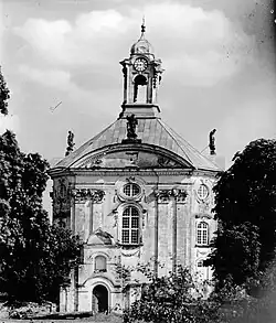 Po dawnym zespole pałacowo-parkowym pozostał barokowy kościół pw. Trójcy Przenajświętszej, wybudowany w latach 1729–1731 z fundacji Stanisława Poniatowskiego wg projektu Johanna Sigmunda Deybla[9]. Prace wykończeniowe prowadzono w latach 1732–1733, a następnie w latach 1738-1743, za kolejnych kolatorów Michała i Eleonory Czartoryskich. Figury ewangelistów są autorstwa, warszawskiego rzeźbiarza, Johanna Chrisostoma Redlera, a sztukaterie zapewne pochodzą z warsztatu Johanna Georga Plerscha[9].