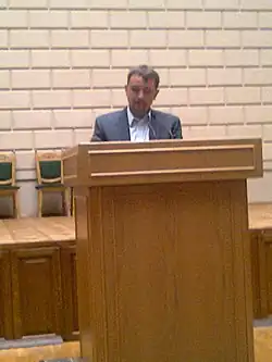 ![]() Wołodymyr Wjatrowycz prezentujący swoją książkę pt. Druga wojna polsko-ukraińska (2011) | |