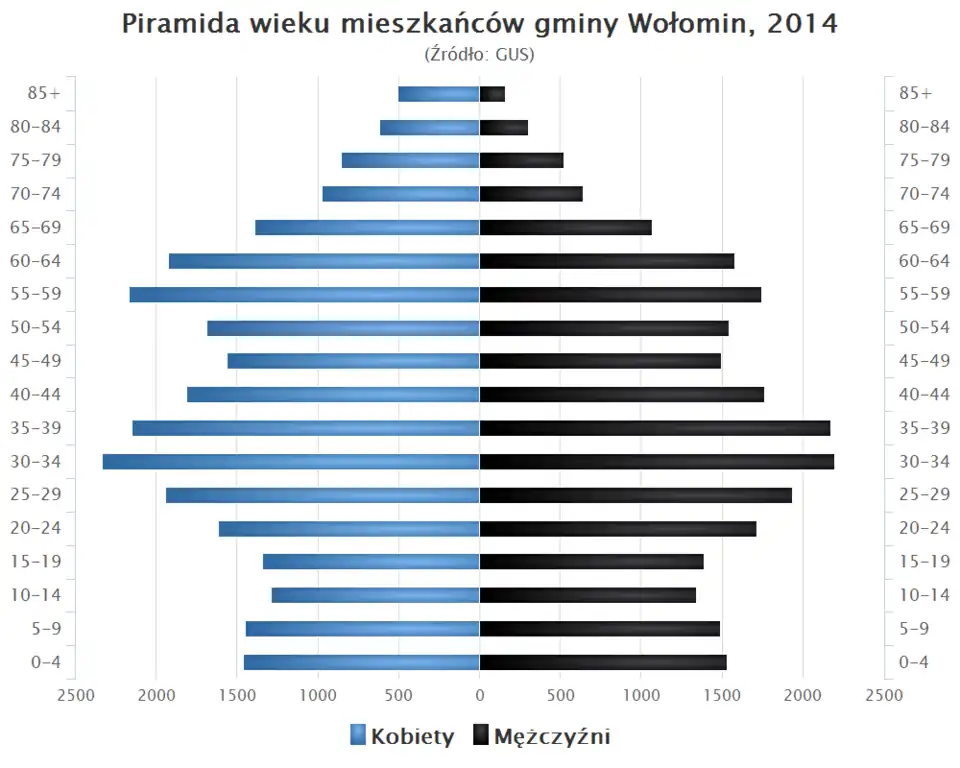 - Piramida wieku mieszkańców gminy Wołomin w 2014 roku[14].