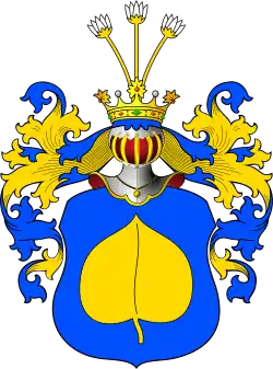 Wobeser I: W polu błękitnym liść lipy złoty (lub zielony). Klejnot: nad hełmem w koronie trzy lilie naturalne srebrne na łodygach ulistnionych zielonych, w wachlarz. Labry błękitne, podbite złotem.