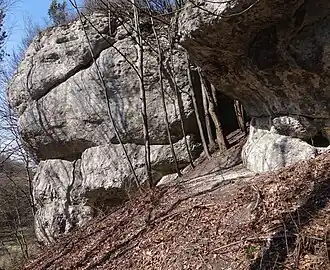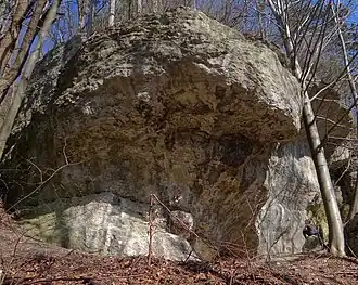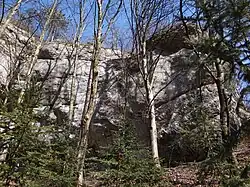 Jest to największy masyw skalny w Dolinie Brzoskwinki. Znajduje się w lesie, po lewej stronie Diablej Skały, na terenie prywatnym, tuż obok domów. Wspinaczka na niej wymaga zgody właściciela. Skała ma wysokość do 20 m, potężny okap, ściany połogie, pionowe lub przewieszone z filarami, kominami i zacięciami. Są na niej 50 drogi wspinaczkowe, w tym 9 projektowanych. Wszystkie są trudne i ekstremalnie trudne – od VI- do VI.6+ w skali Kurtyki. Mają wystawę zachodnią, północną, wschodnią, południową, południowo-wschodnią i pełną asekurację – ringi (r) i stanowiska zjazdowe (st) lub ringi zjazdowe (rz)[3].