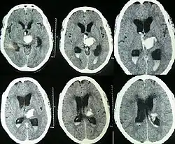 - ↑ Yadav YR., Mukerji G., Shenoy R., Basoor A., Jain G., Nelson A. Endoscopic management of hypertensive intraventricular haemorrhage with obstructive hydrocephalus.. „BMC neurology”, s. 1, 2007. DOI: 10.1186/1471-2377-7-1. PMID: 17204141..