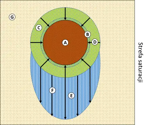 - woda wolna – woda niezwiązana fizycznie z cząsteczkami gruntu, podlegająca sile grawitacji[24].