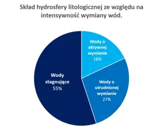 - strefa aktywnej wymiany – wody uczestniczą w cyklu hydrologicznym, odnawialne w cyklu rocznym, zasilane przez infiltracje opadów (wody infiltracyjne) i drenowane przez wody powierzchniowe (wody potamiczne), występują mniej więcej do 100 metrów w głąb Ziemi, są to wody współczesne, ich całkowity czas wymiany wynosi ok. 230–360 lat.