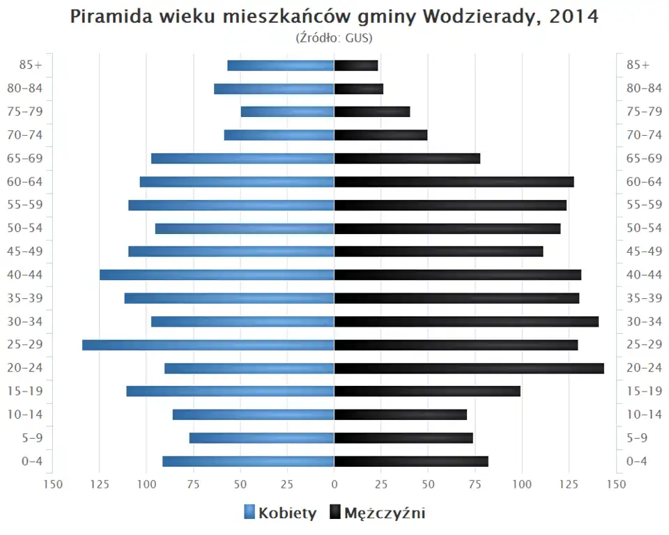 - Piramida wieku mieszkańców gminy Wodzierady w 2014 roku[1].